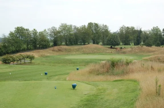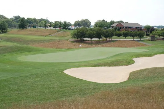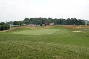 The final par 3 features a green split in two by a hump. you do not want to be on the wrong side with your tee shot. There is also a pond in front so be sure to carry the ball to the green.