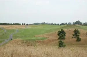 A straight away par five is only reachable in two by the longest hitters. The left side of this hole is protected by native grass and a large hill near the green. A pair of bunkers may collect any approach shot hit short right. Be careful not to go long. Anything over the green will likely end up out of bounds or lost in the native grass.