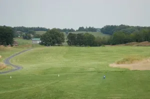 This is an uphill par for that requires an good tee shot to have a good approach to the green. There is a very generous landing area that will set you up for an uphill approach to the green. The green is guarded in front by a bunker so be sure to hit enough club.